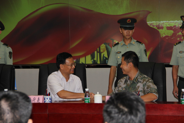 在八一建軍節(jié)來臨之際,博羅縣愛國擁軍促進會組團來到75215部隊新營區(qū),親切慰問部隊官兵,向他們致以節(jié)日的問候,雙方結(jié)成“友好連隊”;葜菔辛_浮山水泥集團有限公司董事長吳國強先生參加了慰問活動。