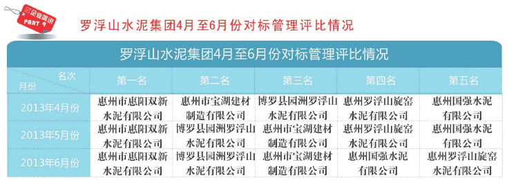 6月22日上午、6月25日至26日, 羅浮山水泥集團(tuán)常務(wù)副總戰(zhàn)兼財(cái)務(wù)總監(jiān)謝偉松、集團(tuán)辦公室主任李麗華、集團(tuán)質(zhì)監(jiān)中心主任曾崽平與集團(tuán)下屬各廠抽派的總經(jīng)理(或副總經(jīng)理),財(cái)務(wù)抖長、車間主任、供銷科長、化驗(yàn)室主任、行政科(組)長分別組成財(cái)務(wù)考核小組、生產(chǎn)考核小組、供銷考核小組、化驗(yàn)室考核小組、行政考核小組,對(duì)各廠的對(duì)標(biāo)管理工作進(jìn)行檢查考核。羅浮山水泥集團(tuán)董事長兼總哉吳國強(qiáng)參加了最后的檢查總結(jié)匯總會(huì)。為了使8S管理活動(dòng)得到扎實(shí)有效的推行.完善公司的行政管理制度,集團(tuán)公司決定: 從2013年第二季度對(duì)標(biāo)管理檢查開始增設(shè)行政考核小組,將行政工作指標(biāo)(含88管理)納入對(duì)標(biāo)管理季度考核當(dāng)中。